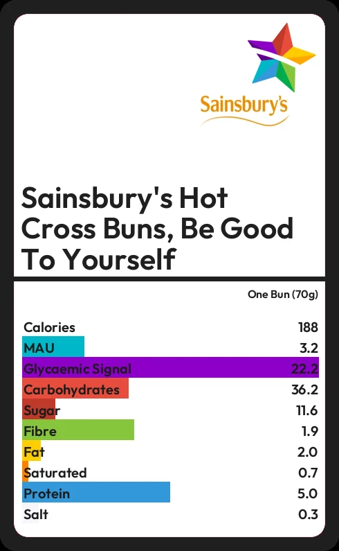 How much sugar in Sainsbury's Hot Cross Buns, Be Good To Yourself?
