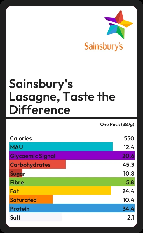Sainsbury's Lasagne, Taste the Difference contains 549.5 calories in one Pack (387g).