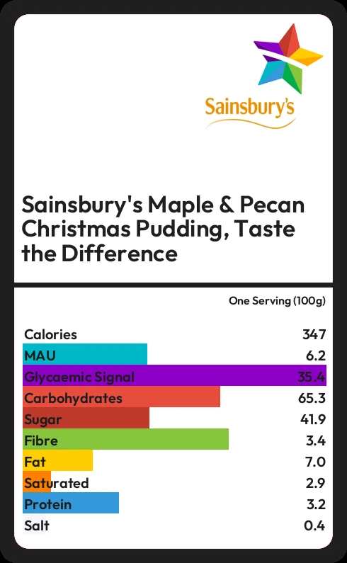 Sainsbury's Maple & Pecan Christmas Pudding, Taste the Difference contains 347 calories in one Serving (100g).