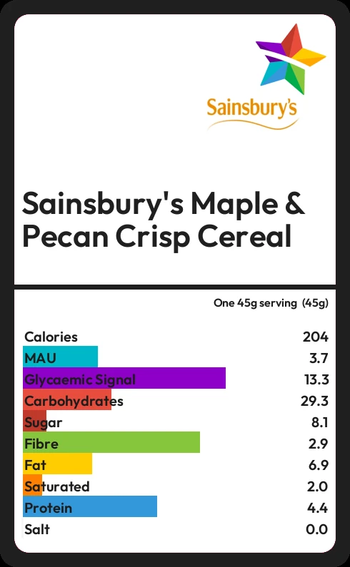 Sainsbury's Maple & Pecan Crisp Cereal contains 203.9 calories in one 45g serving  (45g).
