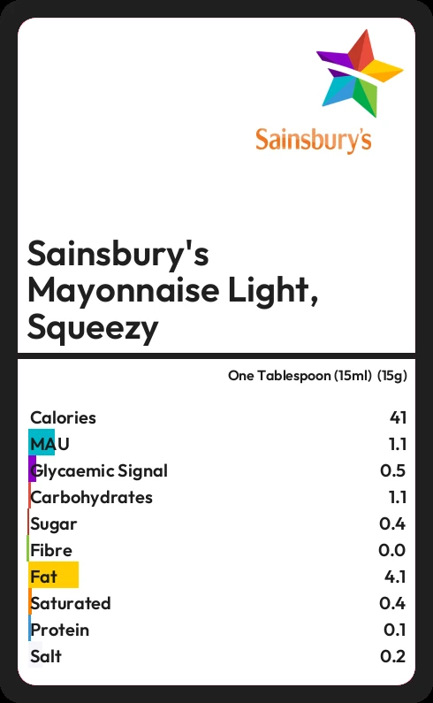 How much fat in Sainsbury's Mayonnaise Light, Squeezy?