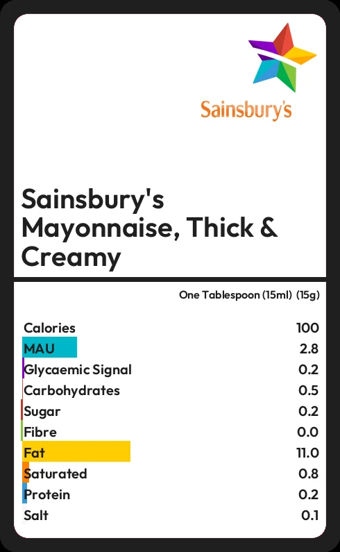 How much fat in Sainsbury's Mayonnaise, Thick & Creamy?