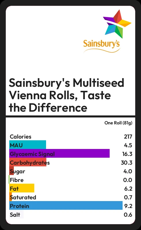 Sainsbury's Multiseed Vienna Rolls, Taste the Difference contains 217.1 calories in one Roll (81g).