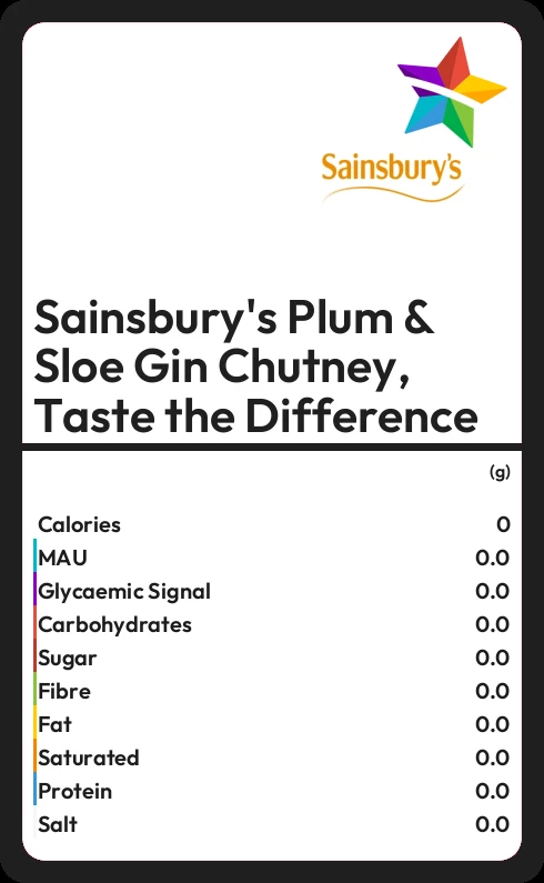 How much fat in Sainsbury's Plum & Sloe Gin Chutney, Taste the Difference?