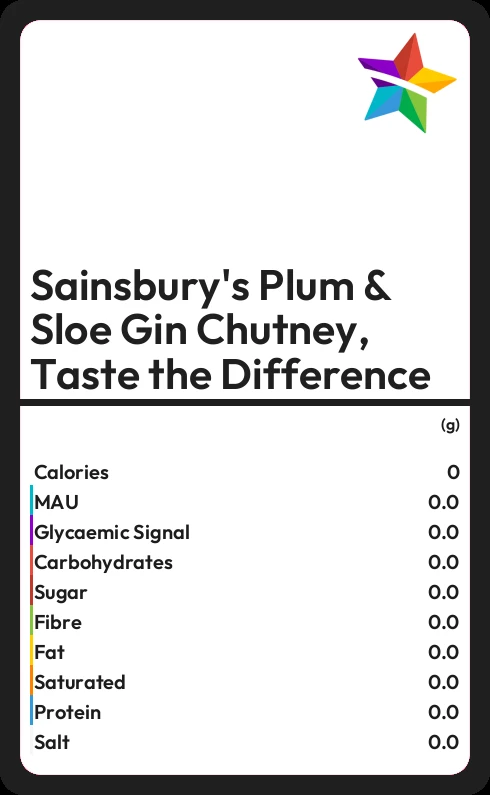 Sainsbury's Plum & Sloe Gin Chutney, Taste the Difference contains 174 calories in 100g.