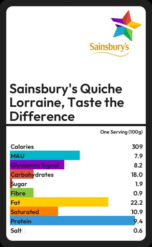 Sainsbury's Quiche Lorraine, Taste the Difference contains 309 calories in one Serving (100g).