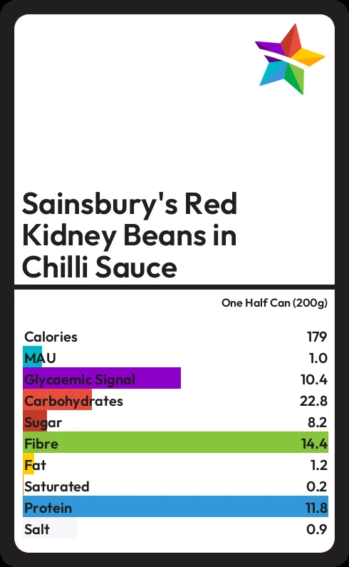 Sainsbury's Red Kidney Beans in Chilli Sauce contains 178 calories in one Half Can (200g).