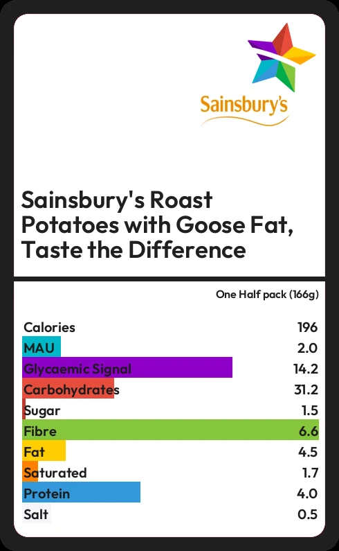 Sainsbury's Roast Potatoes with Goose Fat, Taste the Difference contains 195.9 calories in one Half pack (166g).