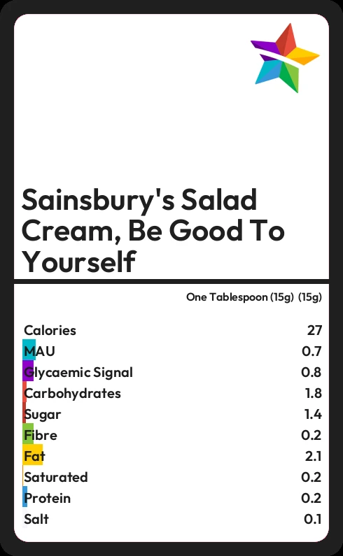 How much fat in Sainsbury's Salad Cream, Be Good To Yourself?
