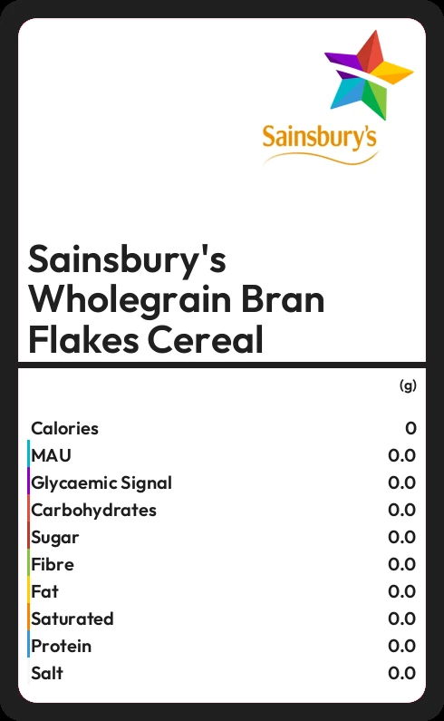 Sainsbury's Wholegrain Bran Flakes Cereal contains 366 calories in 100g.