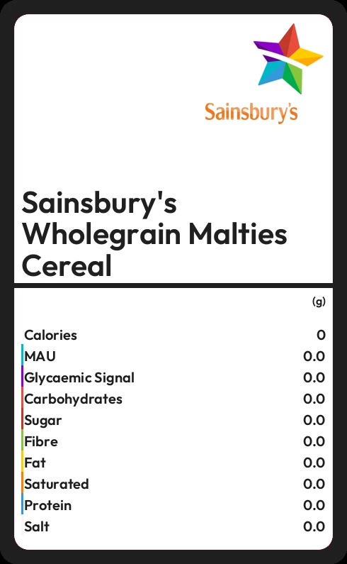 Sainsbury's Wholegrain Malties Cereal contains 370 calories in 100g.