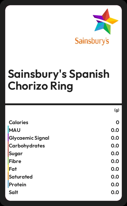 Sainsbury's Spanish Chorizo Ring contains 0.6g sugar in 100g