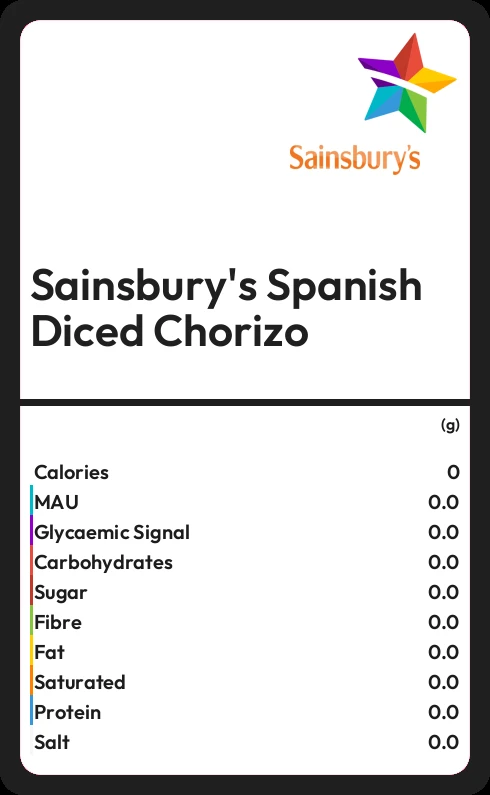 Sainsbury's Spanish Diced Chorizo contains 1.8g sugar in 100g