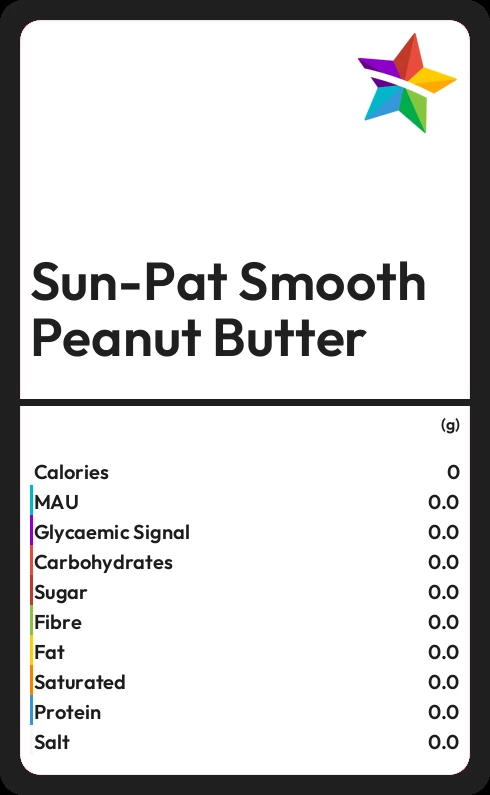 In 100g of Sun-Pat Smooth Peanut Butter there are 48.8g of fat of which 9.6g are saturated.