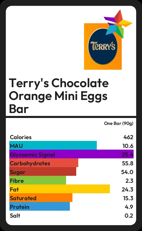 Terry's Chocolate Orange Mini Eggs Bar contains 461.7 calories in one Bar (90g).