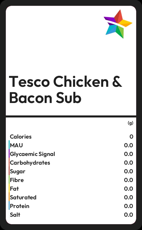 Tesco Chicken & Bacon Sub contains 237 calories in 100g.