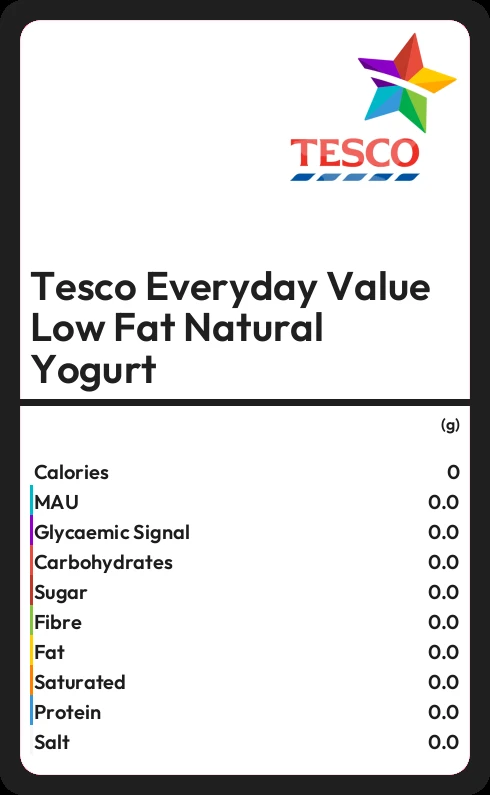 How many calories in Tesco Everyday Value Low Fat Natural Yogurt?