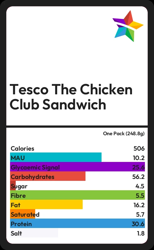 Tesco The Chicken Club Sandwich contains 505.1 calories in one Pack (248.8g).