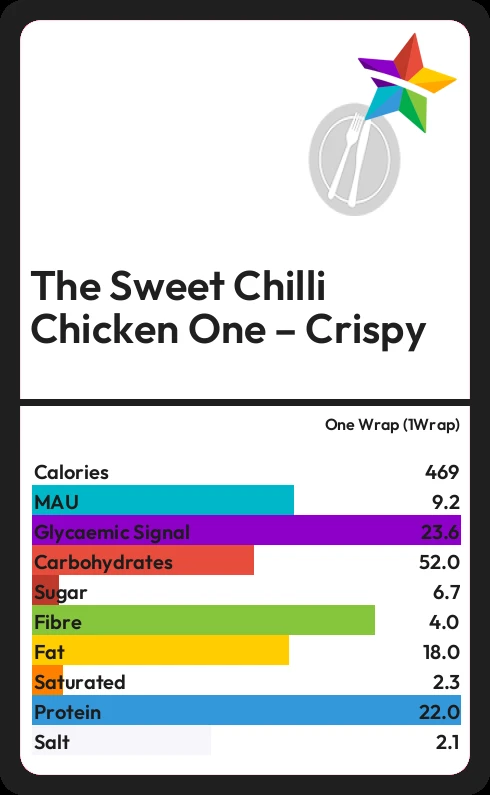 The Sweet Chilli Chicken One – Crispy contains 469 calories in one Wrap (1Wrap).