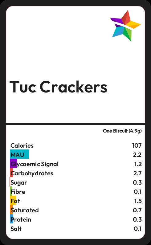 Tuc Crackers contains 0.3g sugar in one Biscuit (4.9g)