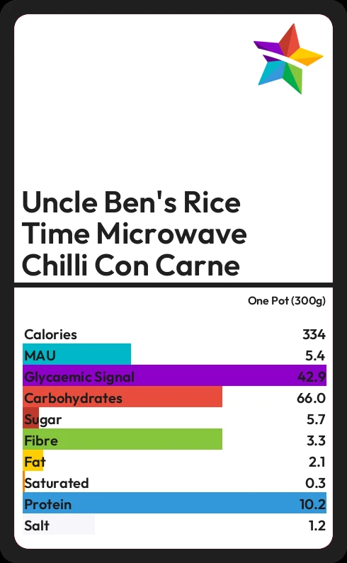 Uncle Ben's Rice Time Microwave Chilli Con Carne contains 333 calories in one Pot (300g).