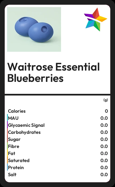 In 100g of Waitrose Essential Blueberries there are 0.5g of fat of which none are saturated.