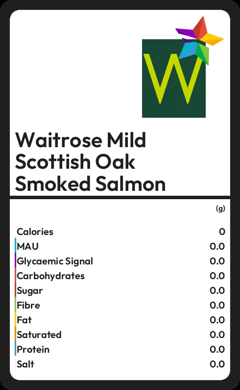 Waitrose Mild Scottish Oak Smoked Salmon contains 0.5g sugar in 100g