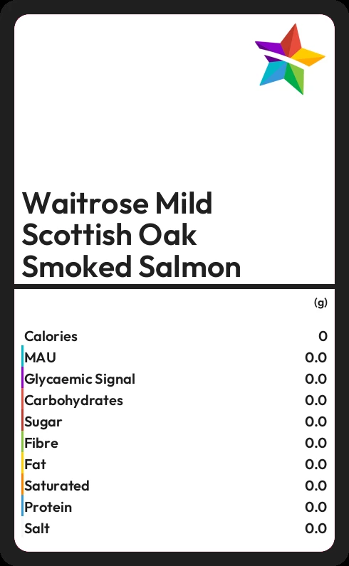 Waitrose Mild Scottish Oak Smoked Salmon contains 0.5g sugar in 100g