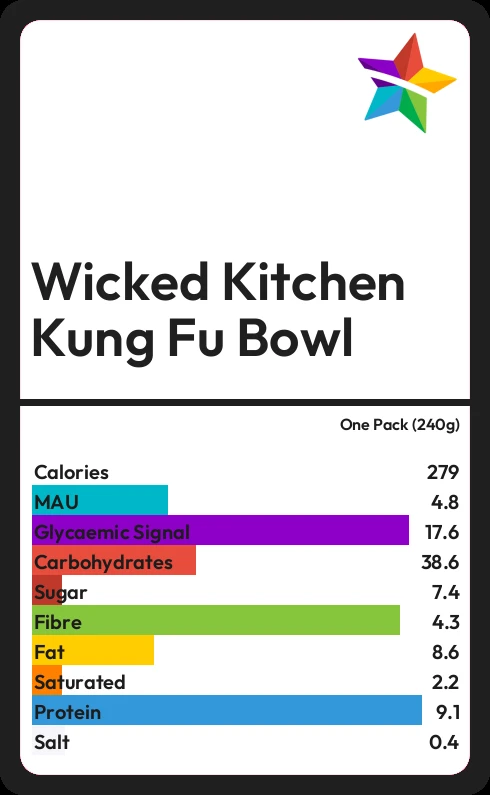 Wicked Kitchen Kung Fu Bowl contains 7.4g sugar in one Pack (240g) - that is around 2 cubes of sugar.