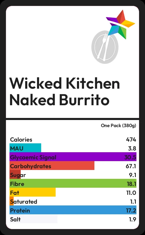 Wicked Kitchen Naked Burrito contains 9.1g sugar in one Pack (380g) - that is around 2 cubes of sugar.