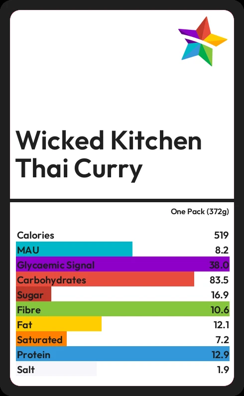 Wicked Kitchen Thai Curry contains 17.1g sugar in one Pack (372g) - that is around 4 cubes of sugar.