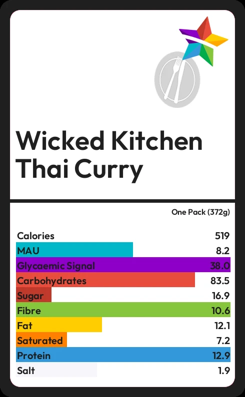 Wicked Kitchen Thai Curry contains 17.1g sugar in one Pack (372g) - that is around 4 cubes of sugar.