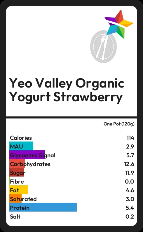 Yeo Valley Organic Yogurt Strawberry contains 114 calories in one Pot (120g).