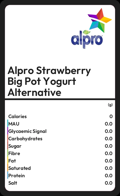 In 100g of Alpro Strawberry Big Pot Yogurt Alternative there are 1.9g of fat of which 0.3g are saturated.