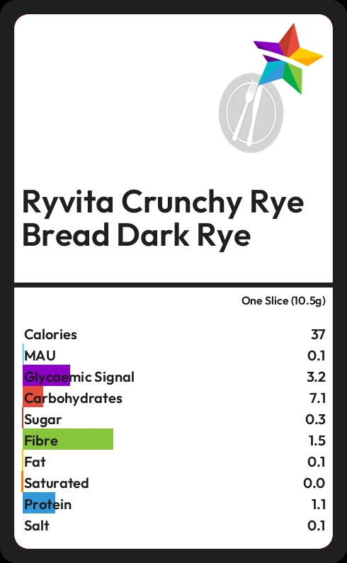 Ryvita Crunchy Rye Bread Dark Rye contains 37 calories in one Slice (10.5g).