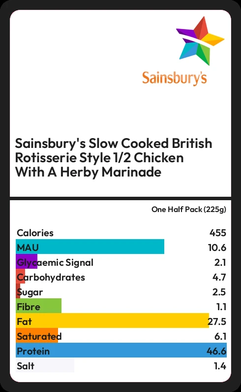 Sainsbury's Slow Cooked British Rotisserie Style 1/2 Chicken With A Herby Marinade