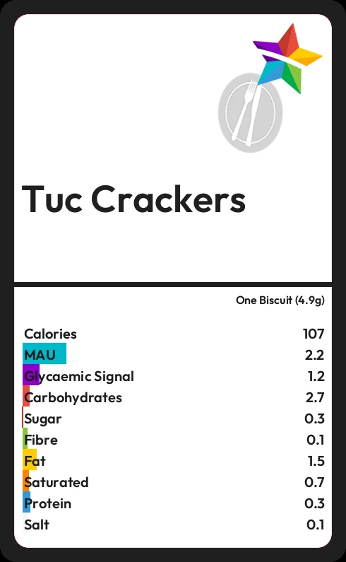 Tuc Crackers contains 0.3g sugar in one Biscuit (4.9g)