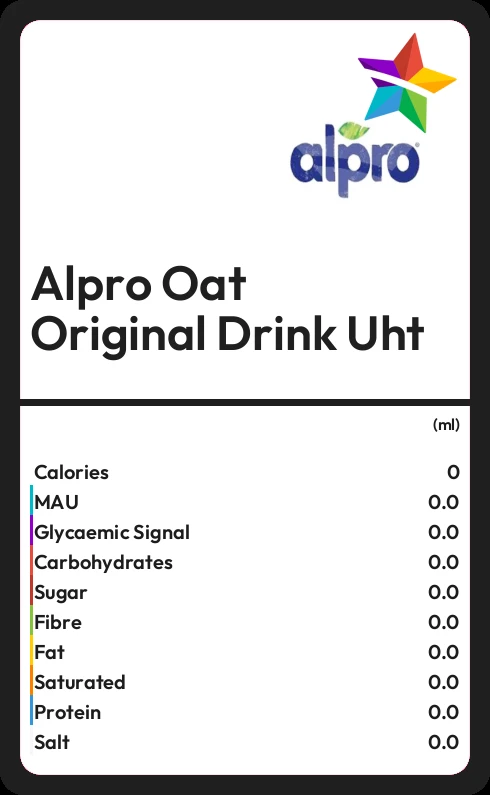Alpro Oat Original Drink Uht contains 44 calories in 100ml.