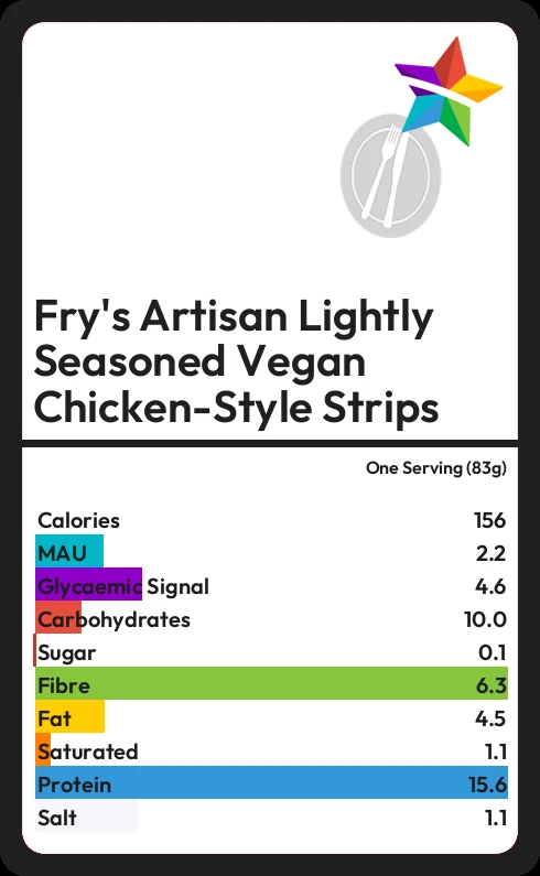 Fry's Artisan Lightly Seasoned Vegan Chicken-Style Strips contains 0.1g sugar in one Serving (83g)