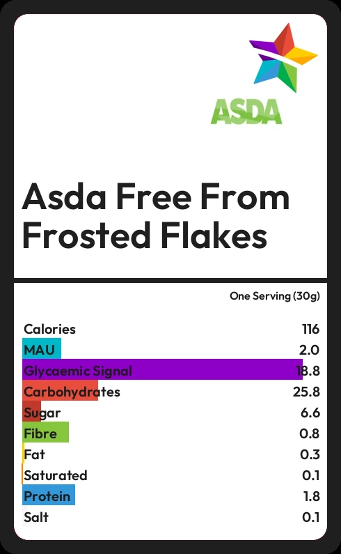 Asda Free From Frosted Flakes contains 116.1 calories in one Serving (30g).