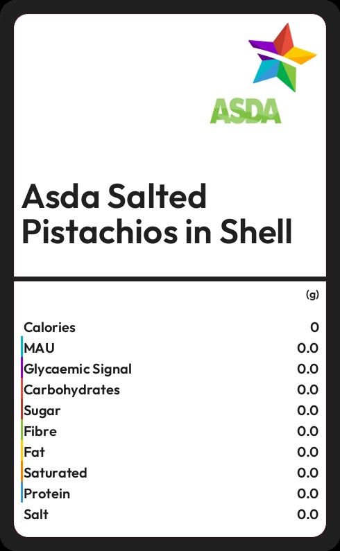 Asda Salted Pistachios in Shell contains 592 calories in 100g.