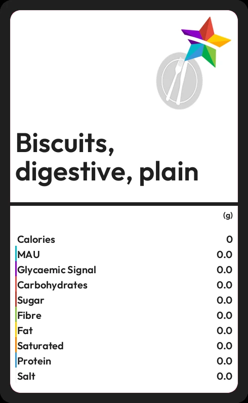 Biscuits, digestive, plain contains 464 calories in 100g.