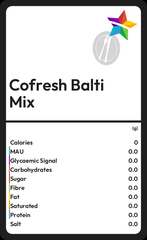Cofresh Balti Mix contains 2.0g sugar in 100g - that is around 1 cube of sugar.