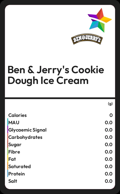 Ben & Jerry's Cookie Dough Ice Cream contains 25.0g sugar in 100g - that is around 6 cubes of sugar.