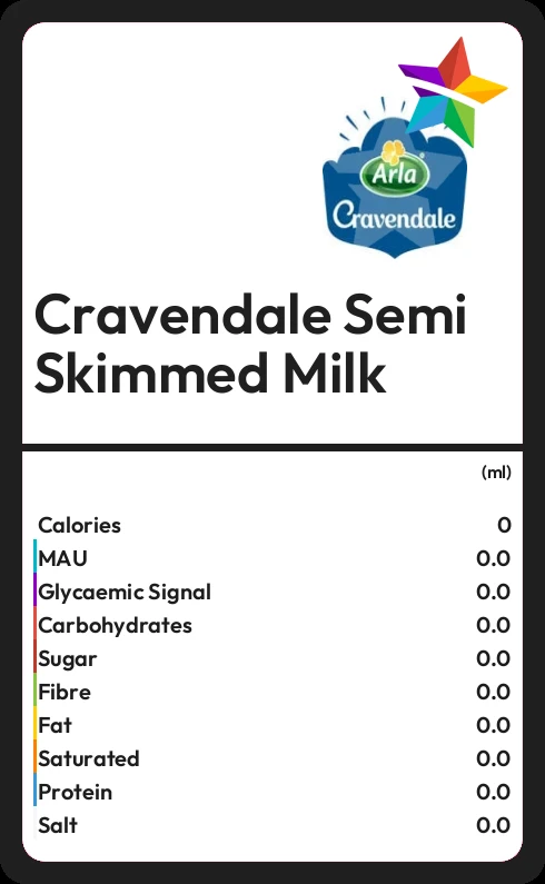 Cravendale Semi Skimmed Milk contains 49 calories in 100ml.