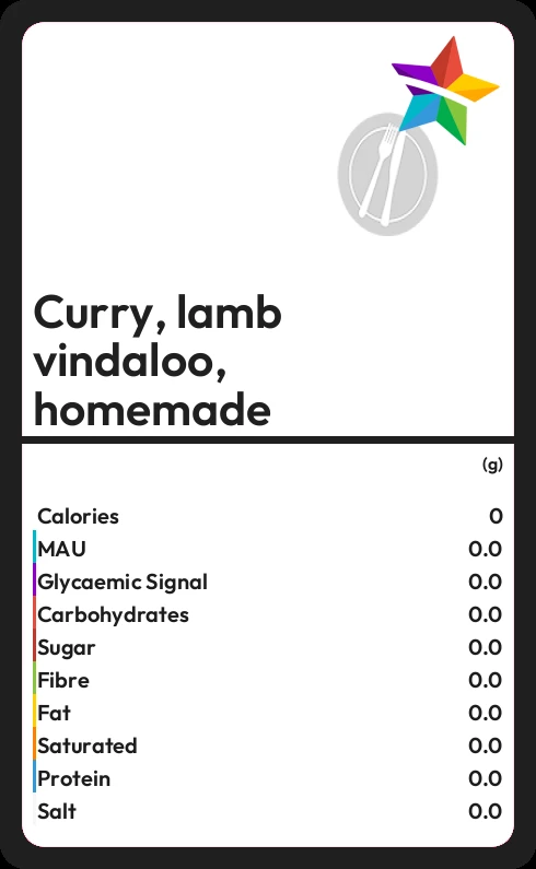 Curry, lamb vindaloo, homemade contains 1.8g sugar in 100g