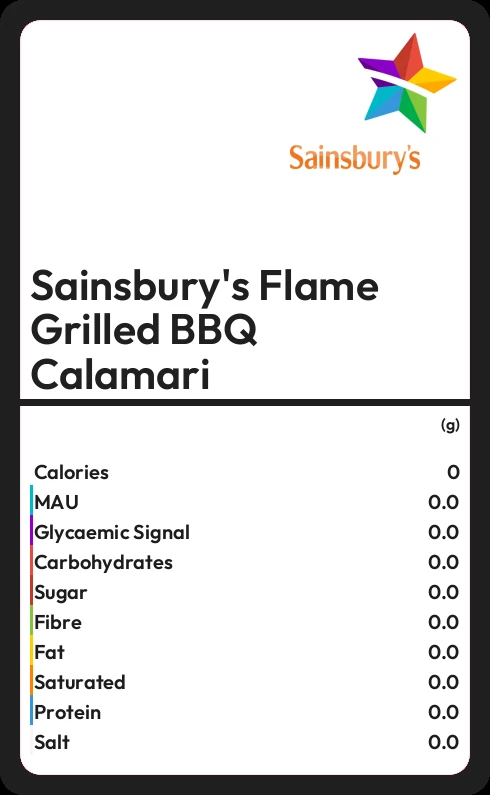 Sainsbury's Flame Grilled BBQ Calamari contains 0.5g sugar in 100g