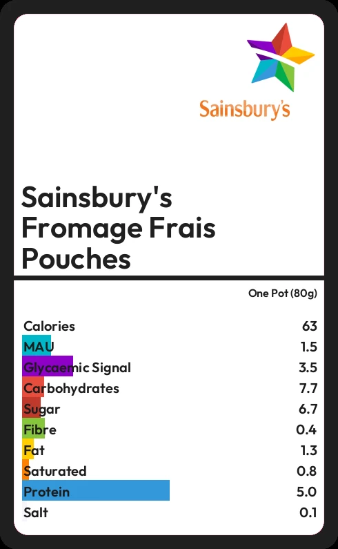 Sainsbury's Fromage Frais Pouches contains 63.2 calories in one Pot (80g).