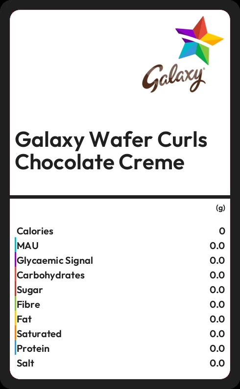 Galaxy Wafer Curls Chocolate Creme contains 50.0g sugar in 100g - that is around 13 cubes of sugar.
