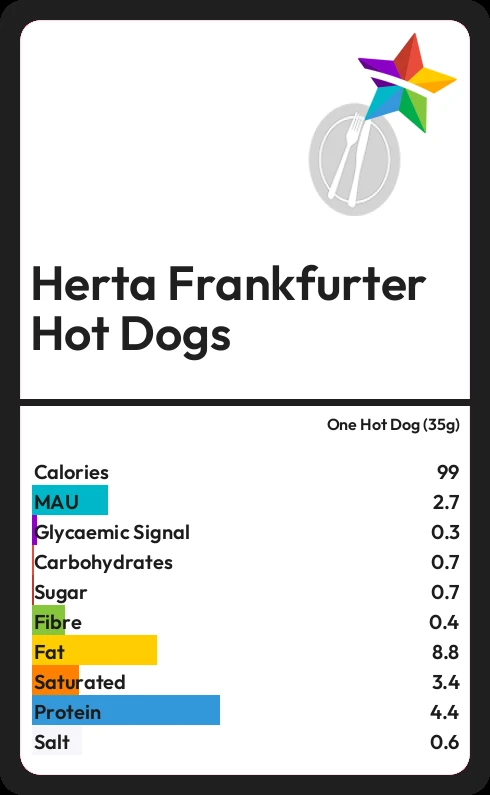 Herta Frankfurter Hot Dogs contains 0.7g sugar in one Hot Dog (35g)